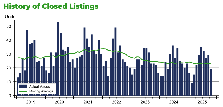 Active listings at the end of October reached 52 units, up 4% from 50 units a year earlier, yielding a 2.3 months' supply of inventory—an increase of 9.5% from 2.1 months. The median list price for active homes was $347,500, reflecting a 4.7% year-over-year gain. New listings totaled 30, unchanged from October 2024.